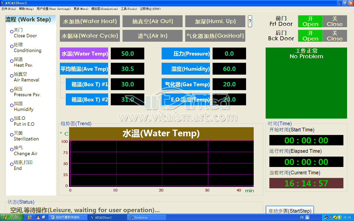 1. Reliability of the main components: The main components (SCADA software, industrial computer, vacuum pump, circulation pump, air compressor, cylinder, chamber seal system, temperature/humidity/pressure sensors) can run at least 500 circles of sterilization as normal.